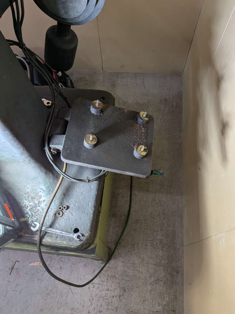古いモーターを慎重に取り外した状態です、台座部分の腐食や歪みがないかを確認し、新しいモーターを設置するための清掃と準備を行います。