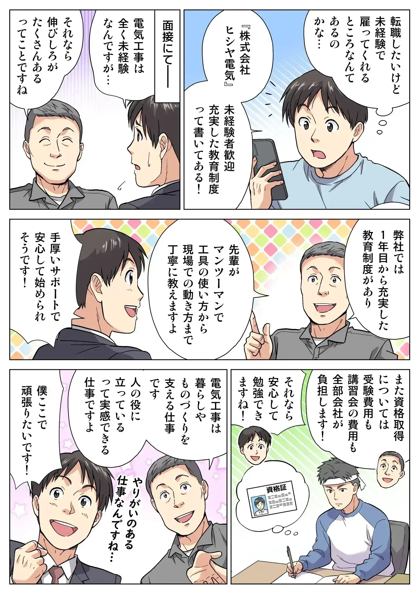 電気工事について右も左もわからなかった私が、今では後輩を指導する立場に。