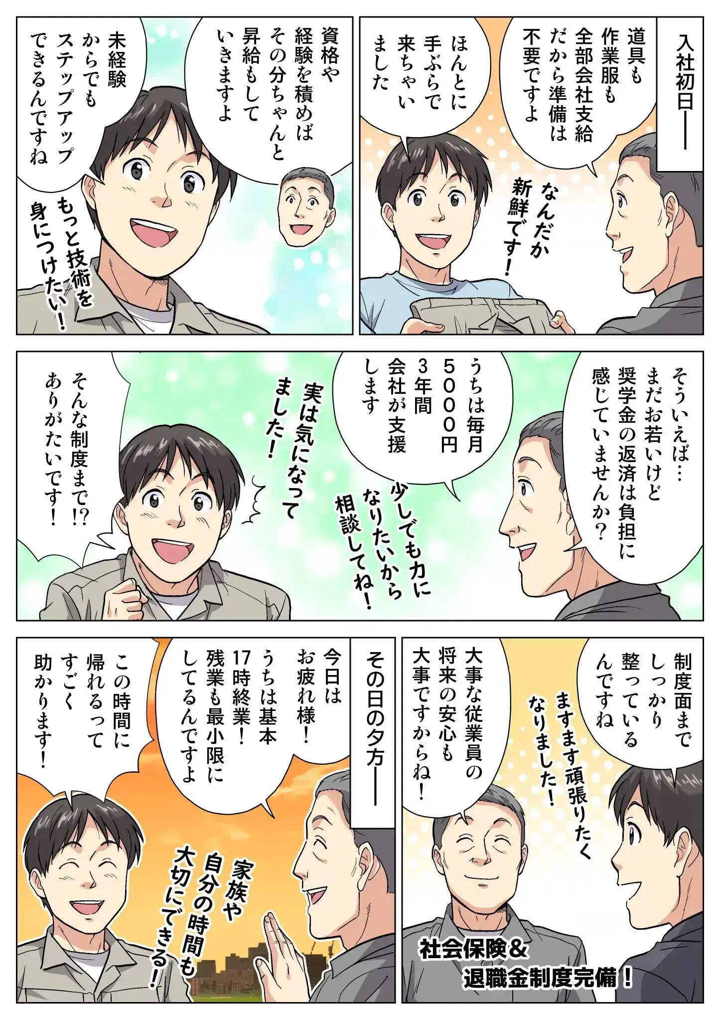 会社のサポートで資格も取得し、自信とやりがいを感じています。